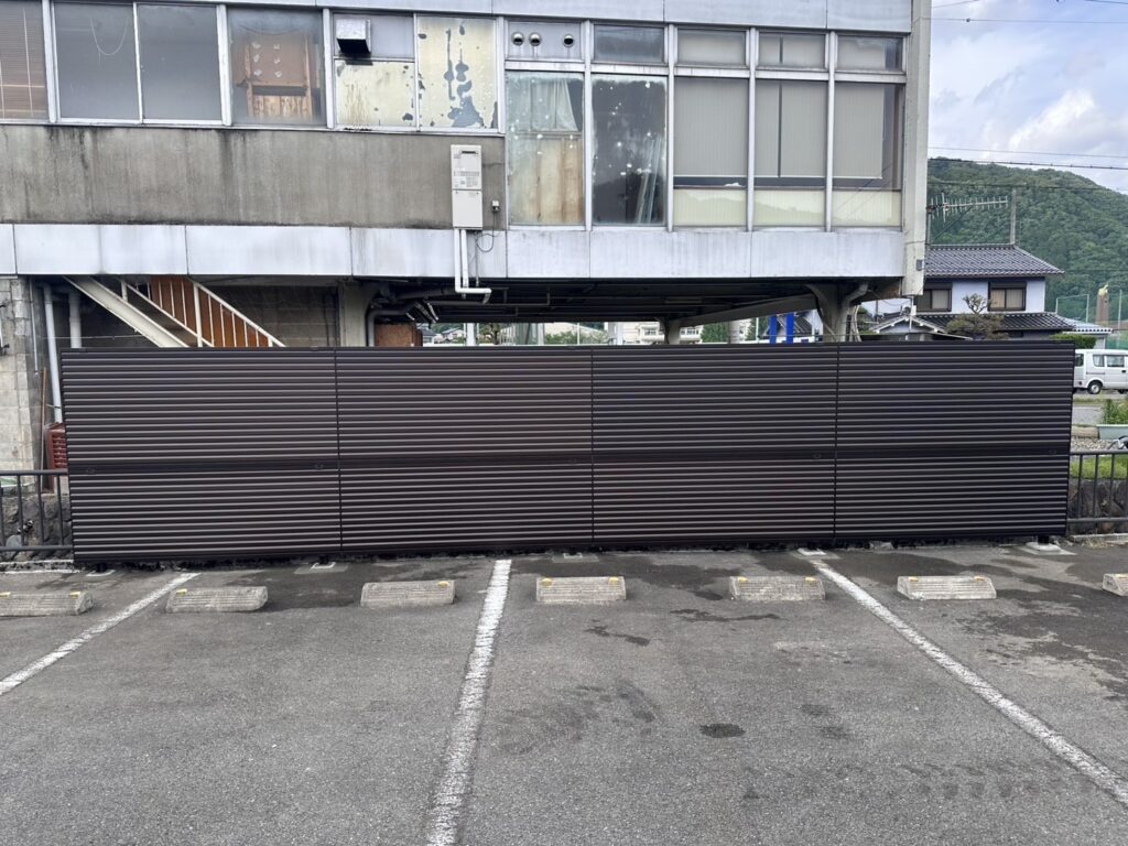 駐車場にフェンスを設置させていただきました😊🛠️ 目隠し用に!【兵庫県養父市】フェンスの取付 駐車場から隣の会社の車や作業が丸見えになっているため、その点を配慮してフェンスを設置したい!とご相談がありました😊 人の視線以外にも侵入者が入ってくることを防ぐ効果も! <施工前> <施工後>